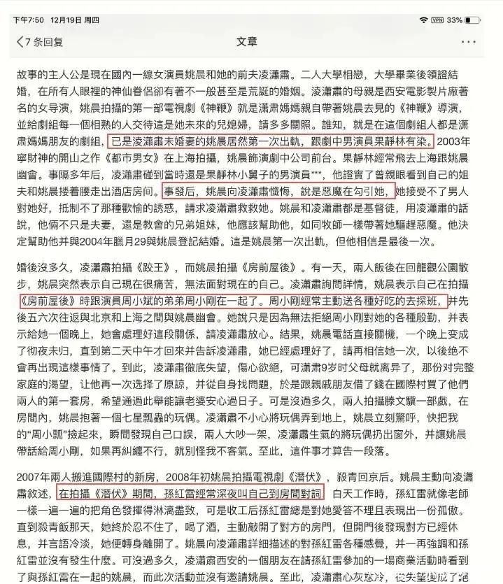 文中详述其在与凌潇肃婚姻存续期间,先后四次突破婚姻忠诚底线,每一段经过皆有旁证支撑,令人愕然;而凌潇肃,则以近乎悲壮的隐忍持续接纳,最终却落得事业崩塌、声誉扫地的结局。