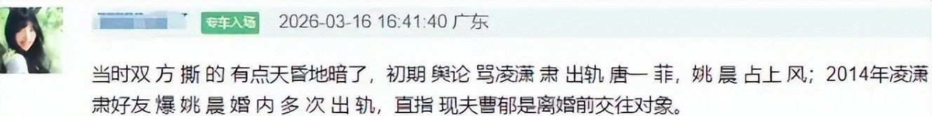 彼时姚晨以泪洗面控诉丈夫与唐一菲暧昧不清,瞬间点燃全民共情,凌潇肃随即沦为千夫所指的“道德败类”。