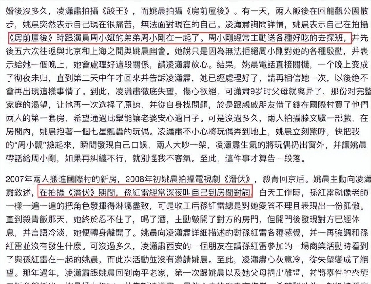事发后姚晨主动向凌潇肃坦白,伏地痛哭称“一时迷失”,恳求对方宽恕。